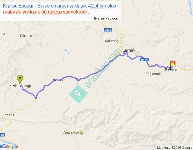 Kızılsu Bucağı - Balveren arası yaklaşık olarak 90 km/h ile yukarıda belirtilen sürede olup, iki yerin kuş uçuşu uzaklığı (mesafesi) 30'dir. Yolculuk otobüsle 1 saat 5 dakika sürmektedir.