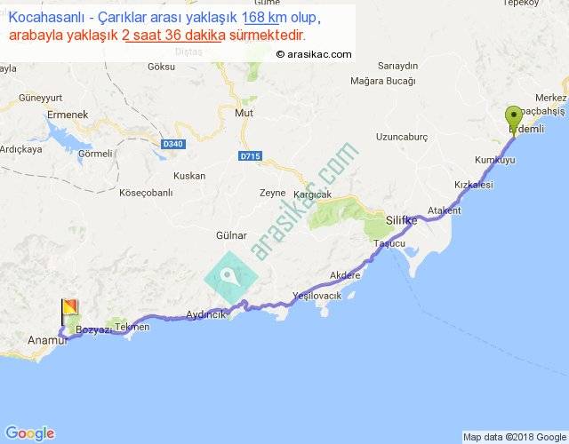 Kocahasanlı - Çarıklar arası yaklaşık olarak 90 km/h ile yukarıda belirtilen sürede olup, iki yerin kuş uçuşu uzaklığı (mesafesi) 134'dir. Yolculuk otobüsle 3 saat 22 dakika sürmektedir.