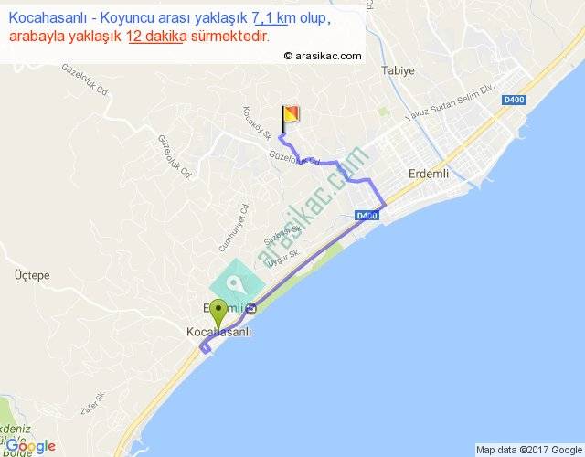 Kocahasanlı - Koyuncu arası yaklaşık olarak 90 km/h ile yukarıda belirtilen sürede olup, iki yerin kuş uçuşu uzaklığı (mesafesi) 3'dir. Yolculuk otobüsle 15 dakika sürmektedir.