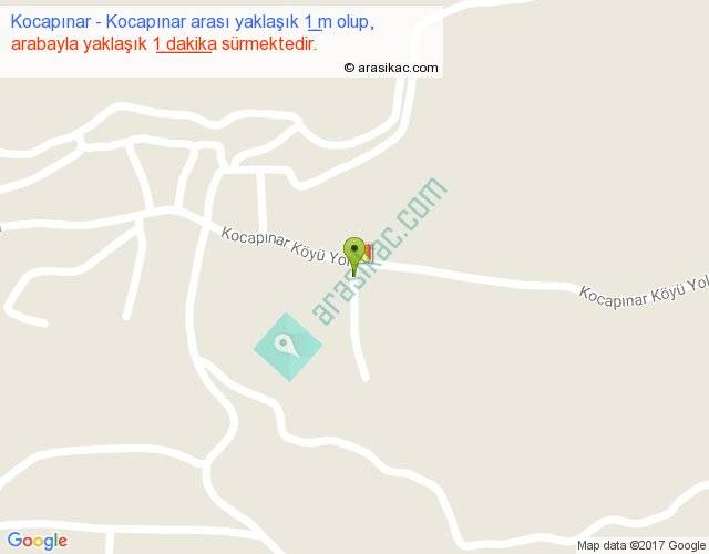 Kocapınar - Kocapınar arası yaklaşık olarak 90 km/h ile yukarıda belirtilen sürede olup, iki yerin kuş uçuşu uzaklığı (mesafesi) 0'dir. Yolculuk otobüsle 1 dakika sürmektedir.