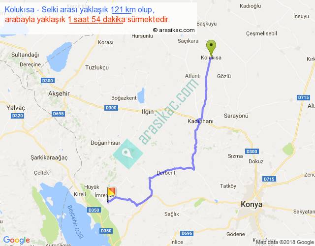 Kolukısa - Selki arası yaklaşık olarak 90 km/h ile yukarıda belirtilen sürede olup, iki yerin kuş uçuşu uzaklığı (mesafesi) 86'dir. Yolculuk otobüsle 2 saat 28 dakika sürmektedir.