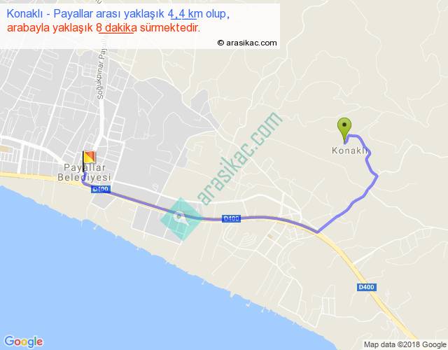 Konaklı - Payallar arası yaklaşık olarak 90 km/h ile yukarıda belirtilen sürede olup, iki yerin kuş uçuşu uzaklığı (mesafesi) 3'dir. Yolculuk otobüsle 10 dakika sürmektedir.