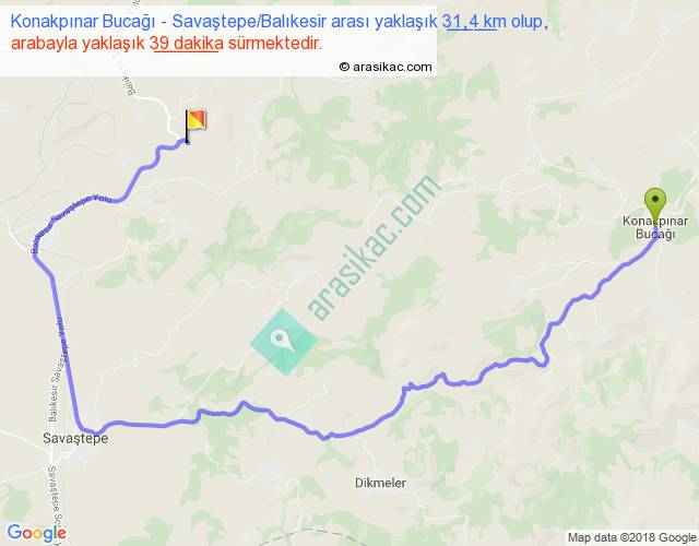 Konakpınar Bucağı - Savaştepe Balıkesir arası yaklaşık olarak 90 km/h ile yukarıda belirtilen sürede olup, iki yerin kuş uçuşu uzaklığı (mesafesi) 13'dir. Yolculuk otobüsle 50 dakika sürmektedir.