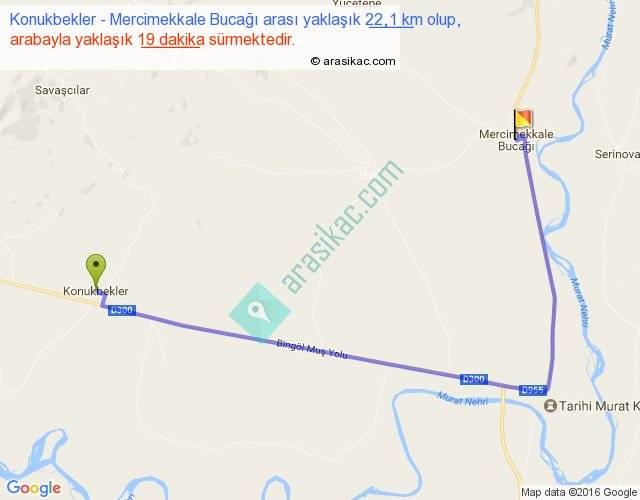Konukbekler - Mercimekkale Bucağı arası yaklaşık olarak 90 km/h ile yukarıda belirtilen sürede olup, iki yerin kuş uçuşu uzaklığı (mesafesi) 13'dir. Yolculuk otobüsle 24 dakika sürmektedir.
