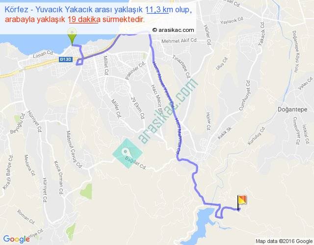 Körfez - Yuvacık Yakacık arası yaklaşık olarak 90 km/h ile yukarıda belirtilen sürede olup, iki yerin kuş uçuşu uzaklığı (mesafesi) 7'dir. Yolculuk otobüsle 24 dakika sürmektedir.