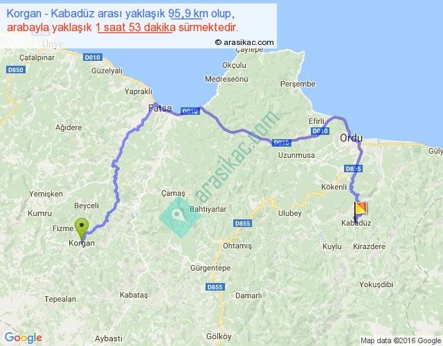Eğer Korgan Kabadüz arası ne kadar yakar (benzin/mazot) diyorsanız, kilometrede 3 ₺ yakan bir aracınız var ise 285, km'de 4 ₺ yakan bir aracınız var ise 380, km'de 5 ₺ yakan bir aracınız var ise 475 ile bu yolculuğu tamamlayabilirsiniz.