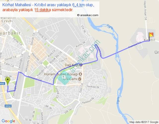Körhat Mahallesi - Kıtılbıl arası yaklaşık olarak 90 km/h ile yukarıda belirtilen sürede olup, iki yerin kuş uçuşu uzaklığı (mesafesi) 4'dir. Yolculuk otobüsle 19 dakika sürmektedir.