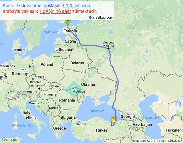 Kose - Gölova arası yaklaşık olarak 90 km/h ile yukarıda belirtilen sürede olup, iki yerin kuş uçuşu uzaklığı (mesafesi) 2313'dir. Eğer belirtilen yerler arasında uçak seferi var ise bu süre uçakla 3 saat 33 dakika'ya kadar düşebilir. Yolculuk otobüsle 2 gün 4 saat sürmektedir.