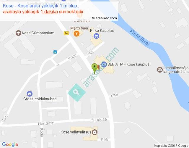 Kose - Kose arası yaklaşık olarak 90 km/h ile yukarıda belirtilen sürede olup, iki yerin kuş uçuşu uzaklığı (mesafesi) 0'dir. Yolculuk otobüsle 1 dakika sürmektedir.