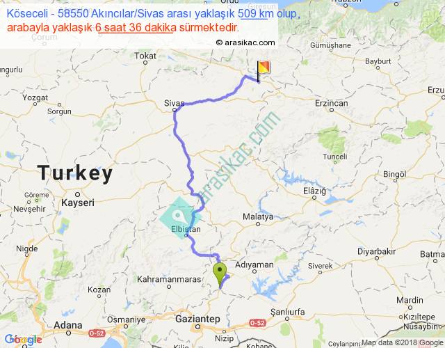 Eğer Köseceli 58550 Akıncılar Sivas arası ne kadar yakar (benzin/mazot) diyorsanız, kilometrede 3 ₺ yakan bir aracınız var ise 1527, km'de 4 ₺ yakan bir aracınız var ise 2036, km'de 5 ₺ yakan bir aracınız var ise 2545 ile bu yolculuğu tamamlayabilirsiniz.