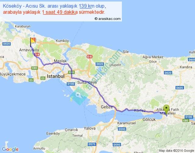 Köseköy - Acısu Sk. arası detaylı bilgi
