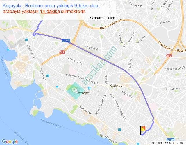 Eğer Koşuyolu Bostancı arası ne kadar yakar (benzin/mazot) diyorsanız, kilometrede 3 ₺ yakan bir aracınız var ise 27, km'de 4 ₺ yakan bir aracınız var ise 36, km'de 5 ₺ yakan bir aracınız var ise 45 ile bu yolculuğu tamamlayabilirsiniz.