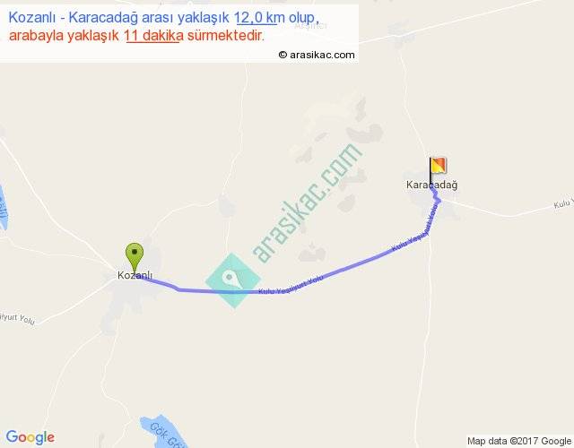 Kozanlı - Karacadağ arası yaklaşık olarak 90 km/h ile yukarıda belirtilen sürede olup, iki yerin kuş uçuşu uzaklığı (mesafesi) 10'dir. Yolculuk otobüsle 14 dakika sürmektedir.