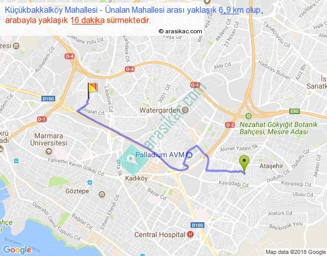Küçükbakkalköy Mahallesi - Ünalan Mahallesi arası yaklaşık olarak 90 km/h ile yukarıda belirtilen sürede olup, iki yerin kuş uçuşu uzaklığı (mesafesi) 5'dir. Yolculuk otobüsle 20 dakika sürmektedir.