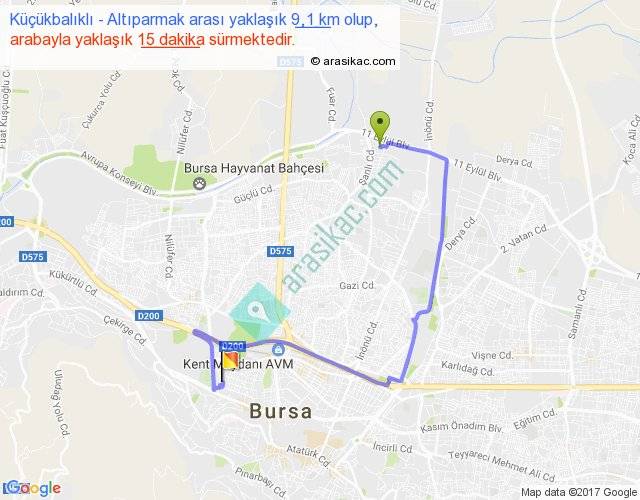 Küçükbalıklı - Altıparmak arası yaklaşık olarak 90 km/h ile yukarıda belirtilen sürede olup, iki yerin kuş uçuşu uzaklığı (mesafesi) 4'dir. Yolculuk otobüsle 19 dakika sürmektedir.