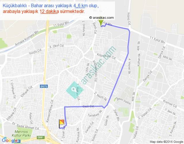 Küçükbalıklı - Bahar arası yaklaşık olarak 90 km/h ile yukarıda belirtilen sürede olup, iki yerin kuş uçuşu uzaklığı (mesafesi) 3'dir. Yolculuk otobüsle 15 dakika sürmektedir.