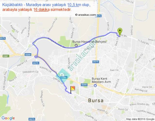 Küçükbalıklı - Muradiye arası yaklaşık olarak 90 km/h ile yukarıda belirtilen sürede olup, iki yerin kuş uçuşu uzaklığı (mesafesi) 4'dir. Yolculuk otobüsle 20 dakika sürmektedir.