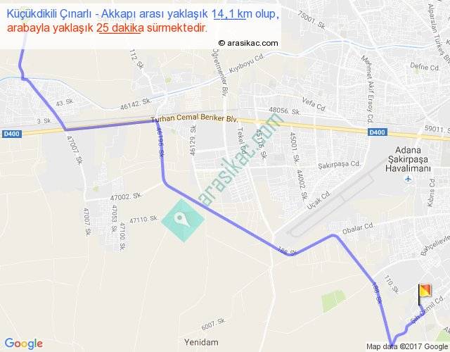 Küçükdikili Çınarlı - Akkapı arası yaklaşık olarak 90 km/h ile yukarıda belirtilen sürede olup, iki yerin kuş uçuşu uzaklığı (mesafesi) 10'dir. Yolculuk otobüsle 32 dakika sürmektedir.