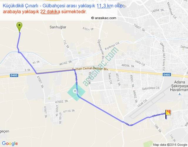 Küçükdikili Çınarlı - Gülbahçesi arası yaklaşık olarak 90 km/h ile yukarıda belirtilen sürede olup, iki yerin kuş uçuşu uzaklığı (mesafesi) 9'dir. Yolculuk otobüsle 28 dakika sürmektedir.