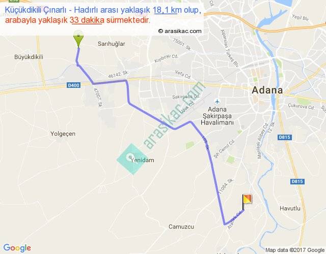 Küçükdikili Çınarlı - Hadırlı arası yaklaşık olarak 90 km/h ile yukarıda belirtilen sürede olup, iki yerin kuş uçuşu uzaklığı (mesafesi) 14'dir. Yolculuk otobüsle 42 dakika sürmektedir.