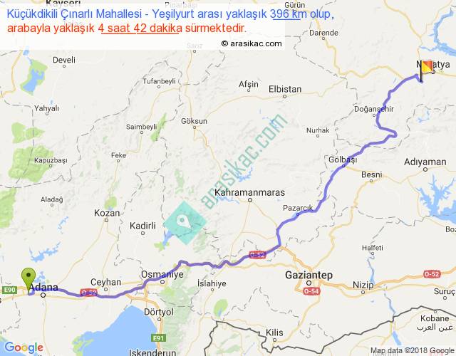 Küçükdikili Çınarlı Mahallesi - Yeşilyurt arası yaklaşık olarak 90 km/h ile yukarıda belirtilen sürede olup, iki yerin kuş uçuşu uzaklığı (mesafesi) 301'dir. Eğer belirtilen yerler arasında uçak seferi var ise bu süre uçakla 27 dakika'ya kadar düşebilir. Yolculuk otobüsle 6 saat 6 dakika sürmektedir.