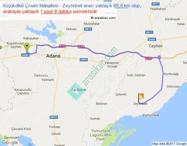 Küçükdikili Çınarlı Mahallesi - Zeytinbeli arası yaklaşık olarak 90 km/h ile yukarıda belirtilen sürede olup, iki yerin kuş uçuşu uzaklığı (mesafesi) 51'dir. Yolculuk otobüsle 1 saat 28 dakika sürmektedir.