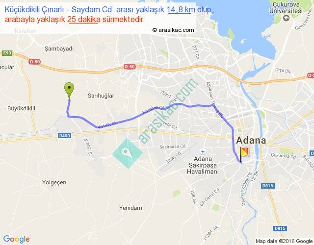 Küçükdikili Çınarlı - Saydam Cd. arası yaklaşık olarak 90 km/h ile yukarıda belirtilen sürede olup, iki yerin kuş uçuşu uzaklığı (mesafesi) 11'dir. Yolculuk otobüsle 32 dakika sürmektedir.