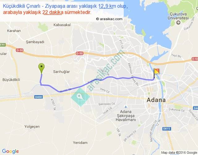 Küçükdikili Çınarlı - Ziyapaşa arası yaklaşık olarak 90 km/h ile yukarıda belirtilen sürede olup, iki yerin kuş uçuşu uzaklığı (mesafesi) 11'dir. Yolculuk otobüsle 28 dakika sürmektedir.