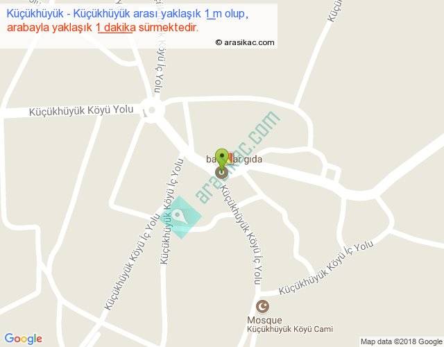 Küçükhüyük - Küçükhüyük arası yaklaşık olarak 90 km/h ile yukarıda belirtilen sürede olup, iki yerin kuş uçuşu uzaklığı (mesafesi) 0'dir. Yolculuk otobüsle 1 dakika sürmektedir.