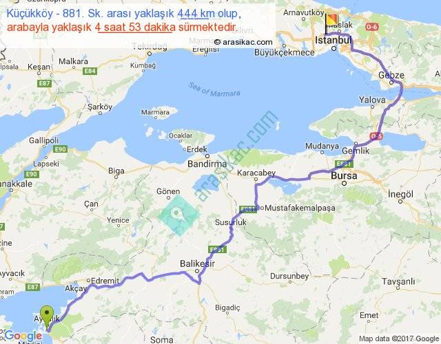 Eğer Küçükköy 881. Sk. arası ne kadar yakar (benzin/mazot) diyorsanız, kilometrede 3 ₺ yakan bir aracınız var ise 1332, km'de 4 ₺ yakan bir aracınız var ise 1776, km'de 5 ₺ yakan bir aracınız var ise 2220 ile bu yolculuğu tamamlayabilirsiniz.