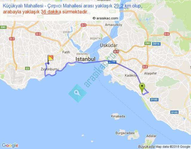 Küçükyalı Mahallesi - Çırpıcı Mahallesi arası yaklaşık olarak 90 km/h ile yukarıda belirtilen sürede olup, iki yerin kuş uçuşu uzaklığı (mesafesi) 19'dir. Yolculuk otobüsle 46 dakika sürmektedir.