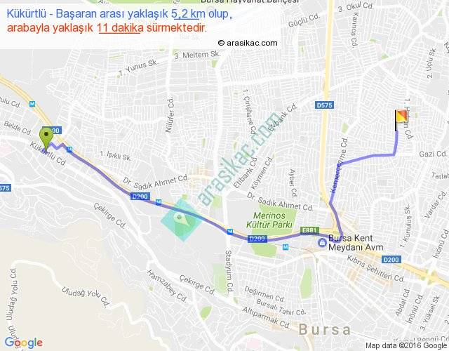 Kükürtlü - Başaran arası yaklaşık olarak 90 km/h ile yukarıda belirtilen sürede olup, iki yerin kuş uçuşu uzaklığı (mesafesi) 4'dir. Yolculuk otobüsle 14 dakika sürmektedir.