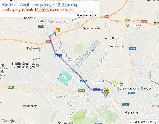 Kükürtlü - Geçit arası yaklaşık olarak 90 km/h ile yukarıda belirtilen sürede olup, iki yerin kuş uçuşu uzaklığı (mesafesi) 9'dir. Yolculuk otobüsle 20 dakika sürmektedir.