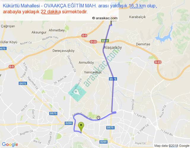 Kükürtlü Mahallesi - OVAAKÇA EĞİTİM MAH. arası yaklaşık olarak 90 km/h ile yukarıda belirtilen sürede olup, iki yerin kuş uçuşu uzaklığı (mesafesi) 11'dir. Yolculuk otobüsle 28 dakika sürmektedir.