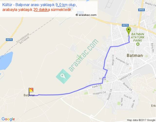 Kültür - Balpınar arası yaklaşık olarak 90 km/h ile yukarıda belirtilen sürede olup, iki yerin kuş uçuşu uzaklığı (mesafesi) 7'dir. Yolculuk otobüsle 26 dakika sürmektedir.