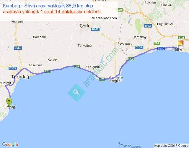 Kumbağ - Silivri arası yaklaşık olarak 90 km/h ile yukarıda belirtilen sürede olup, iki yerin kuş uçuşu uzaklığı (mesafesi) 70'dir. Yolculuk otobüsle 1 saat 36 dakika sürmektedir.