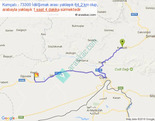 Eğer Kumçatı 73300 İdil Şırnak arası ne kadar yakar (benzin/mazot) diyorsanız, kilometrede 3 ₺ yakan bir aracınız var ise 192, km'de 4 ₺ yakan bir aracınız var ise 256, km'de 5 ₺ yakan bir aracınız var ise 320 ile bu yolculuğu tamamlayabilirsiniz.