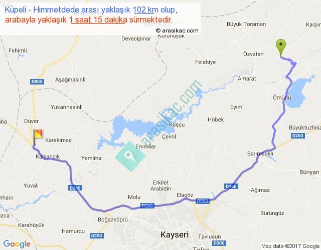 Küpeli - Himmetdede arası yaklaşık olarak 90 km/h ile yukarıda belirtilen sürede olup, iki yerin kuş uçuşu uzaklığı (mesafesi) 62'dir. Yolculuk otobüsle 1 saat 37 dakika sürmektedir.
