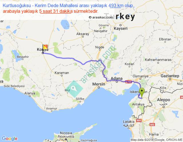 Kurtlusoğuksu - Kerim Dede Mahallesi arası yaklaşık olarak 90 km/h ile yukarıda belirtilen sürede olup, iki yerin kuş uçuşu uzaklığı (mesafesi) 367'dir. Eğer belirtilen yerler arasında uçak seferi var ise bu süre uçakla 33 dakika'ya kadar düşebilir. Yolculuk otobüsle 7 saat 10 dakika sürmektedir.