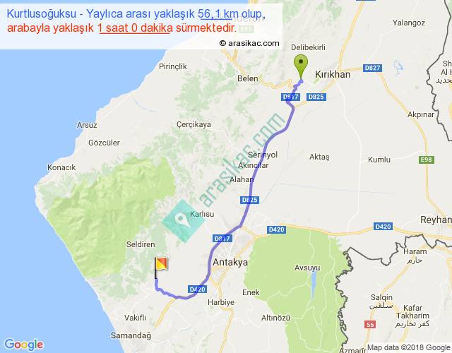 Kurtlusoğuksu - Yaylıca arası yaklaşık olarak 90 km/h ile yukarıda belirtilen sürede olup, iki yerin kuş uçuşu uzaklığı (mesafesi) 43'dir. Yolculuk otobüsle 1 saat 18 dakika sürmektedir.
