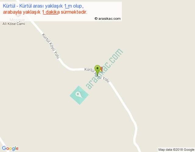 Kürtül - Kürtül arası yaklaşık olarak 90 km/h ile yukarıda belirtilen sürede olup, iki yerin kuş uçuşu uzaklığı (mesafesi) 0'dir. Yolculuk otobüsle 1 dakika sürmektedir.