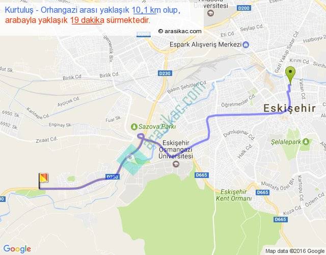 Kurtuluş - Orhangazi arası yaklaşık olarak 90 km/h ile yukarıda belirtilen sürede olup, iki yerin kuş uçuşu uzaklığı (mesafesi) 8'dir. Yolculuk otobüsle 24 dakika sürmektedir.