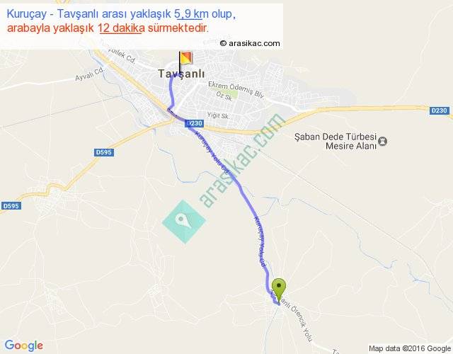 Kuruçay - Tavşanlı arası yaklaşık olarak 90 km/h ile yukarıda belirtilen sürede olup, iki yerin kuş uçuşu uzaklığı (mesafesi) 5'dir. Yolculuk otobüsle 15 dakika sürmektedir.