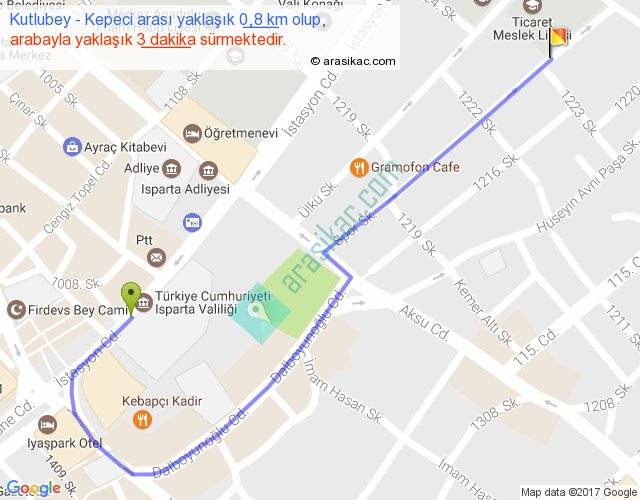 Kutlubey - Kepeci arası yaklaşık olarak 90 km/h ile yukarıda belirtilen sürede olup, iki yerin kuş uçuşu uzaklığı (mesafesi) 0'dir. Yolculuk otobüsle 3 dakika sürmektedir.