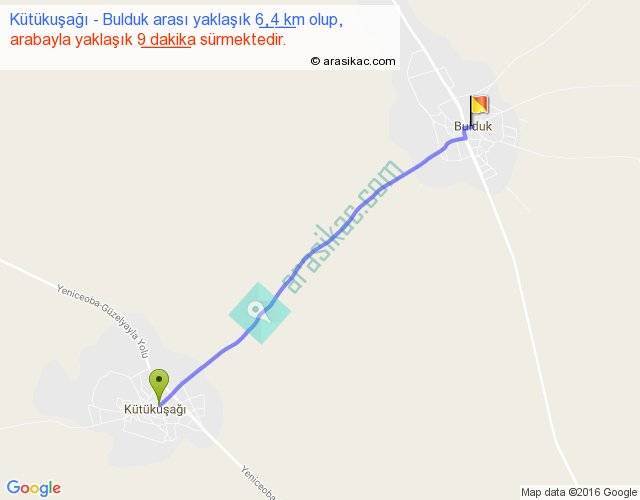 Kütükuşağı - Bulduk arası yaklaşık olarak 90 km/h ile yukarıda belirtilen sürede olup, iki yerin kuş uçuşu uzaklığı (mesafesi) 6'dir. Yolculuk otobüsle 11 dakika sürmektedir.