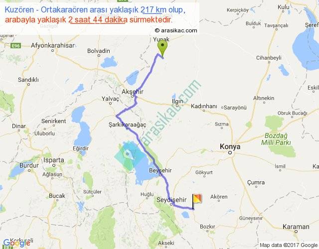 Kuzören - Ortakaraören arası yaklaşık olarak 90 km/h ile yukarıda belirtilen sürede olup, iki yerin kuş uçuşu uzaklığı (mesafesi) 148'dir. Yolculuk otobüsle 3 saat 33 dakika sürmektedir.
