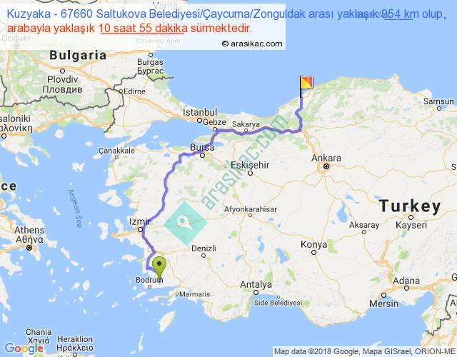 Kuzyaka - 67660 Saltukova Belediyesi Çaycuma Zonguldak arası yaklaşık olarak 90 km/h ile yukarıda belirtilen sürede olup, iki yerin kuş uçuşu uzaklığı (mesafesi) 610'dir. Eğer belirtilen yerler arasında uçak seferi var ise bu süre uçakla 56 dakika'ya kadar düşebilir. Yolculuk otobüsle 14 saat 11 dakika sürmektedir.