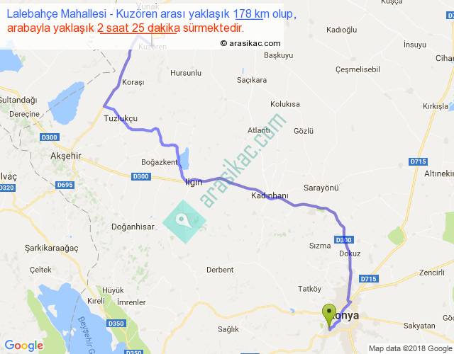 Lalebahçe Mahallesi - Kuzören arası yaklaşık olarak 90 km/h ile yukarıda belirtilen sürede olup, iki yerin kuş uçuşu uzaklığı (mesafesi) 112'dir. Yolculuk otobüsle 3 saat 8 dakika sürmektedir.