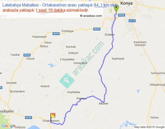 Lalebahçe Mahallesi - Ortakaraören arası yaklaşık olarak 90 km/h ile yukarıda belirtilen sürede olup, iki yerin kuş uçuşu uzaklığı (mesafesi) 58'dir. Yolculuk otobüsle 1 saat 42 dakika sürmektedir.
