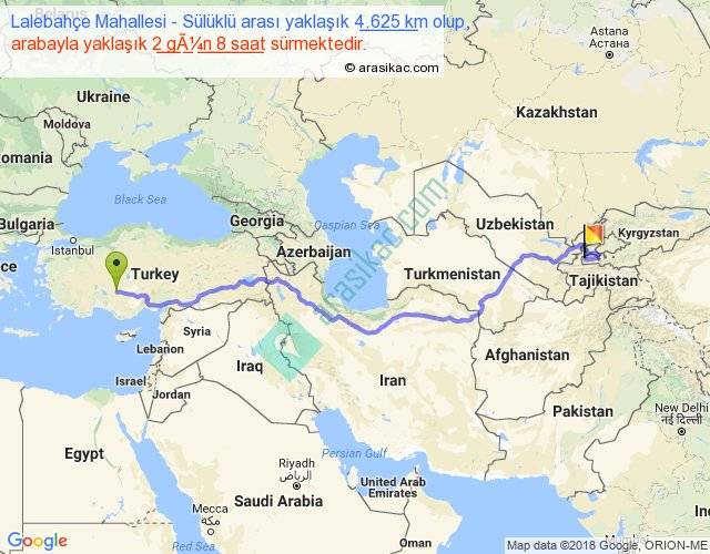Lalebahçe Mahallesi - Sülüklü arası yaklaşık olarak 90 km/h ile yukarıda belirtilen sürede olup, iki yerin kuş uçuşu uzaklığı (mesafesi) 3181'dir. Eğer belirtilen yerler arasında uçak seferi var ise bu süre uçakla 4 saat 53 dakika'ya kadar düşebilir. Yolculuk otobüsle 3 gün 0 saat sürmektedir.